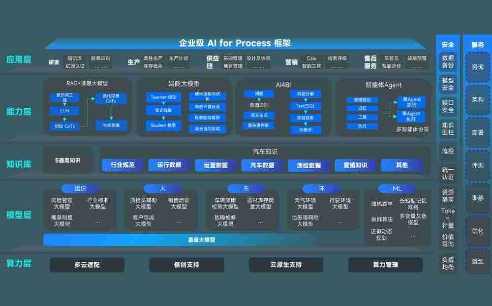 端到端的一站式AI工作空间深度融合了从企业战略规划到日常经营的全流程业务板块,,,,定向解决车企内部领域多、、、部门多、、链条长、、、、场景碎片化等难题,,支持车企快速构建以AI为核心的生产力写作体系,,,,实现任务执行与AI能力的无缝集成与交互